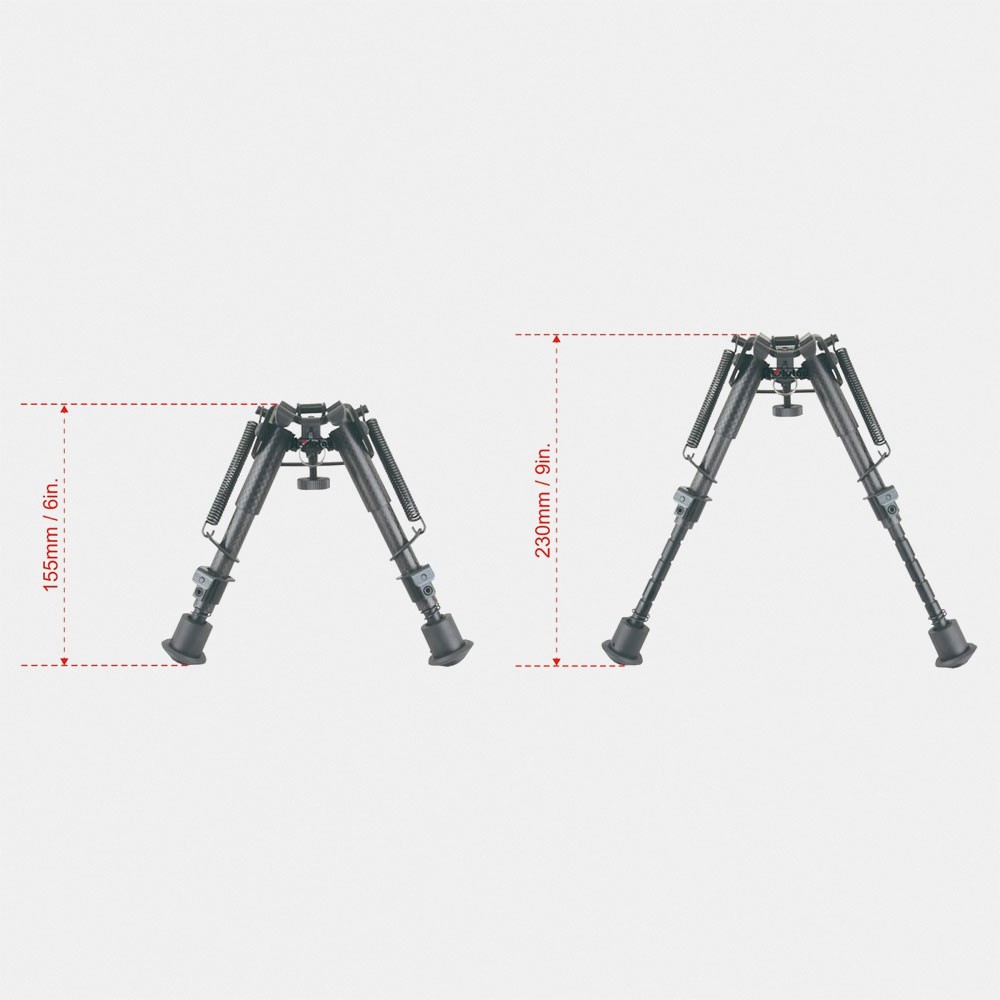 Le bipied à ressort en fibre de carbone 6-9 est une solution légère et portable pour les chasseurs et tireurs à la recherche de stabilité. Son design durable, combiné à des pieds antidérapants en caoutchouc et à une hauteur réglable, en fait un accessoire essentiel pour améliorer vos performances de tir sur tous types de terrains.