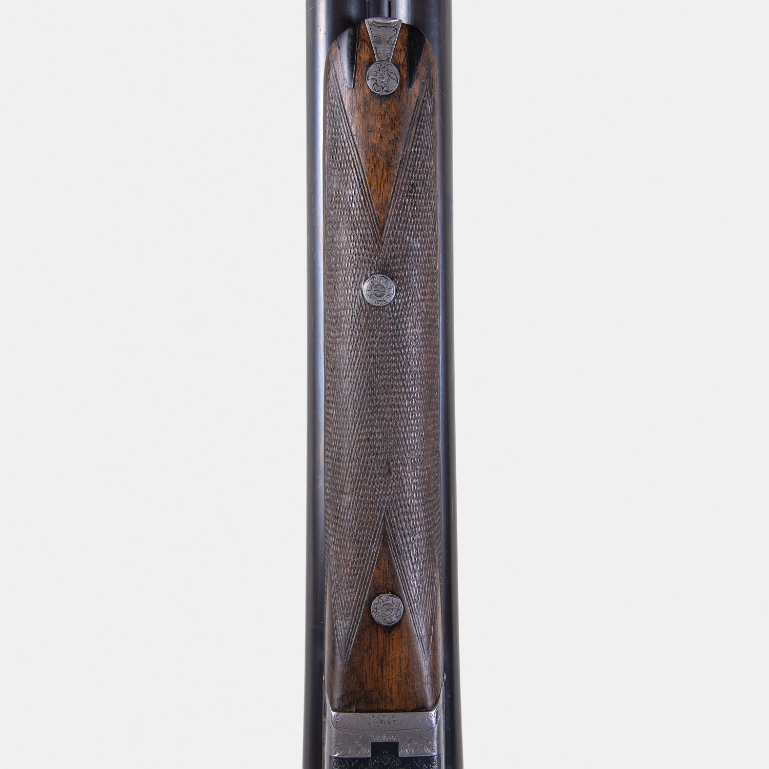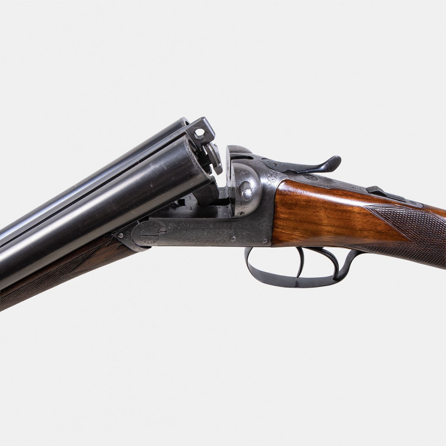 Cogswell & Harrison 1897 (Catégorie D). Éjecteurs, épreuve Poudre Vive. Canons longs 76cm miroirs. Crosse 37cm. Bascule gravée. Fusil anglais de prestige.
