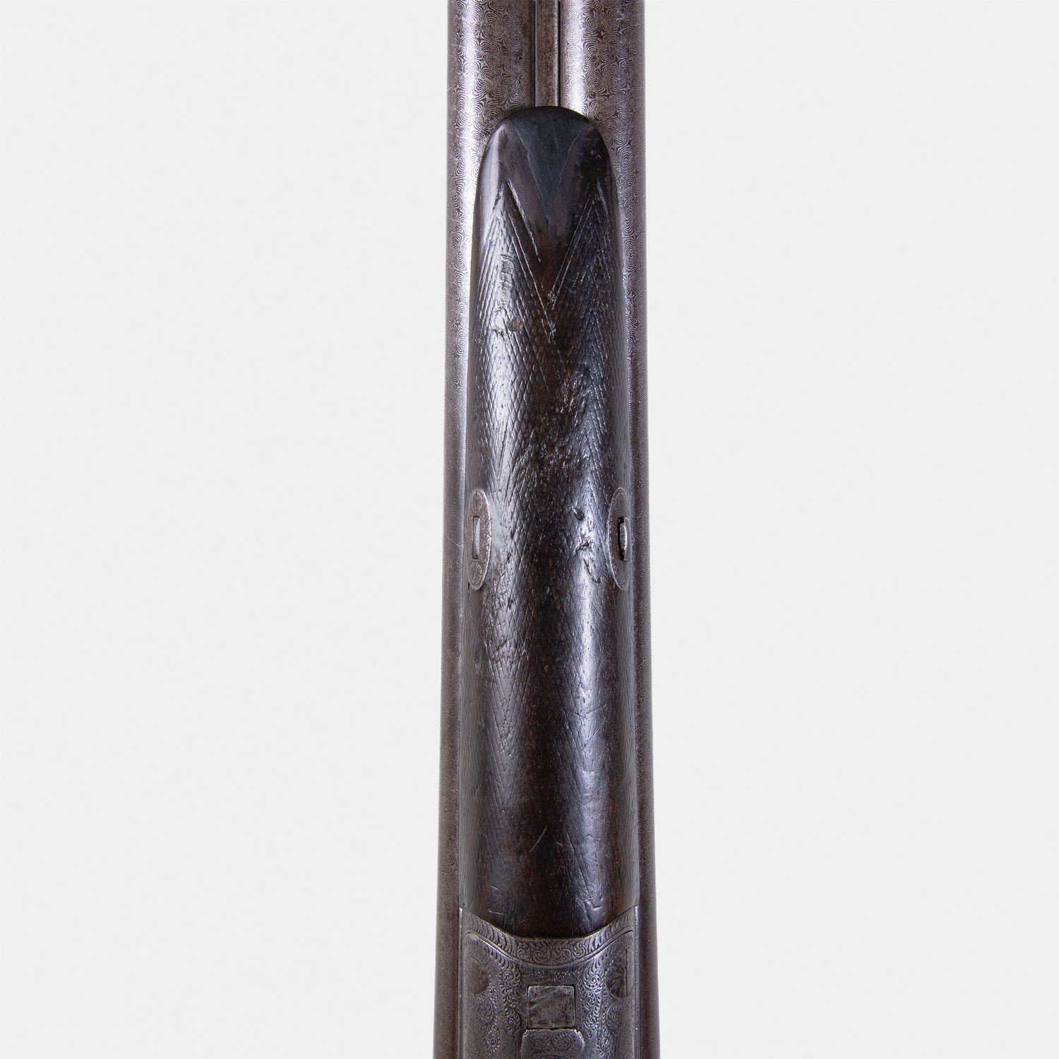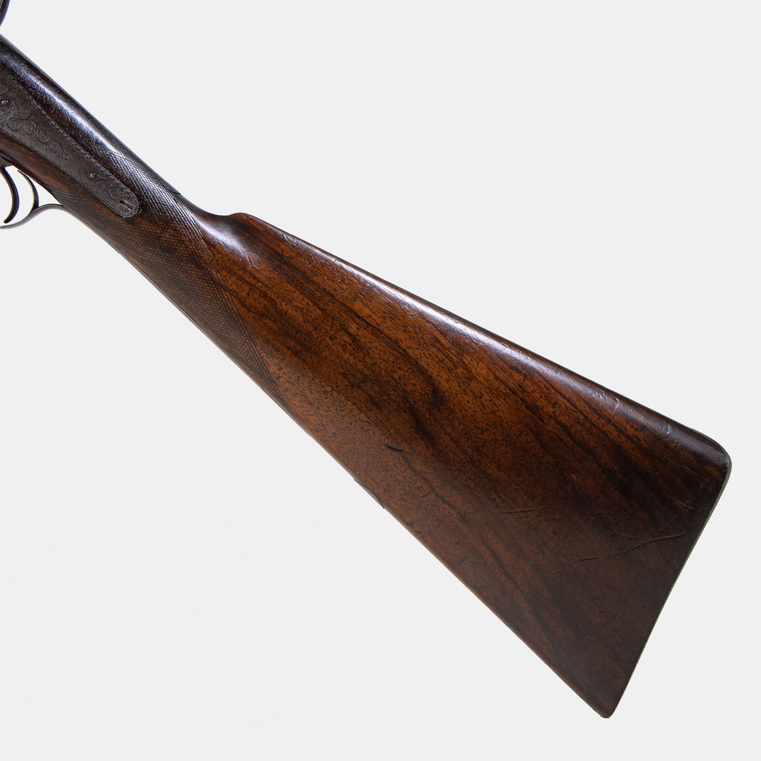 Fusil à chiens Adams & Co London Cal. 12/65 (c. 1880). Canons Damas, gravures signées. Certificat Catégorie D inclus (Vente libre). Une pièce historique saine et authentique.