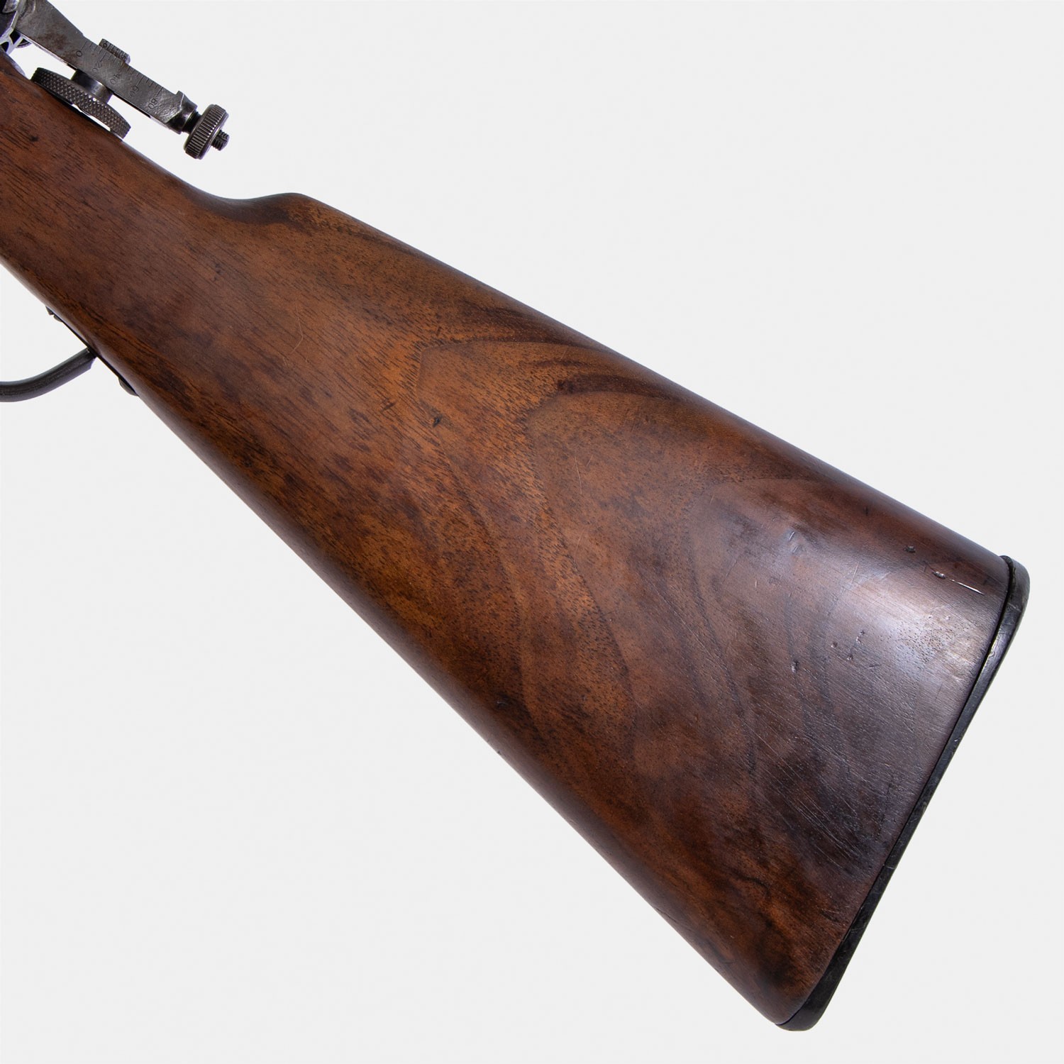 Carabine BSA Martini Model 12 Cal. 22 LR, bronzage 95% d’origine avec légères traces anciennes, crosse bois en très bon état, mécanisme bon, canon avec rayures nettes 8/10.
